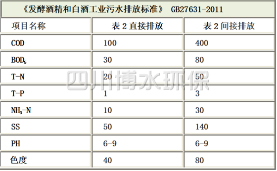 发酵酒精和白酒工业污水排放标准: